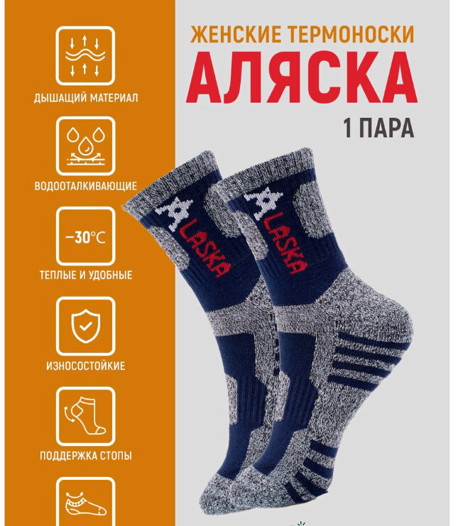 Термоноски Аляска, размер 37-41, 1 пара, синий, женские
