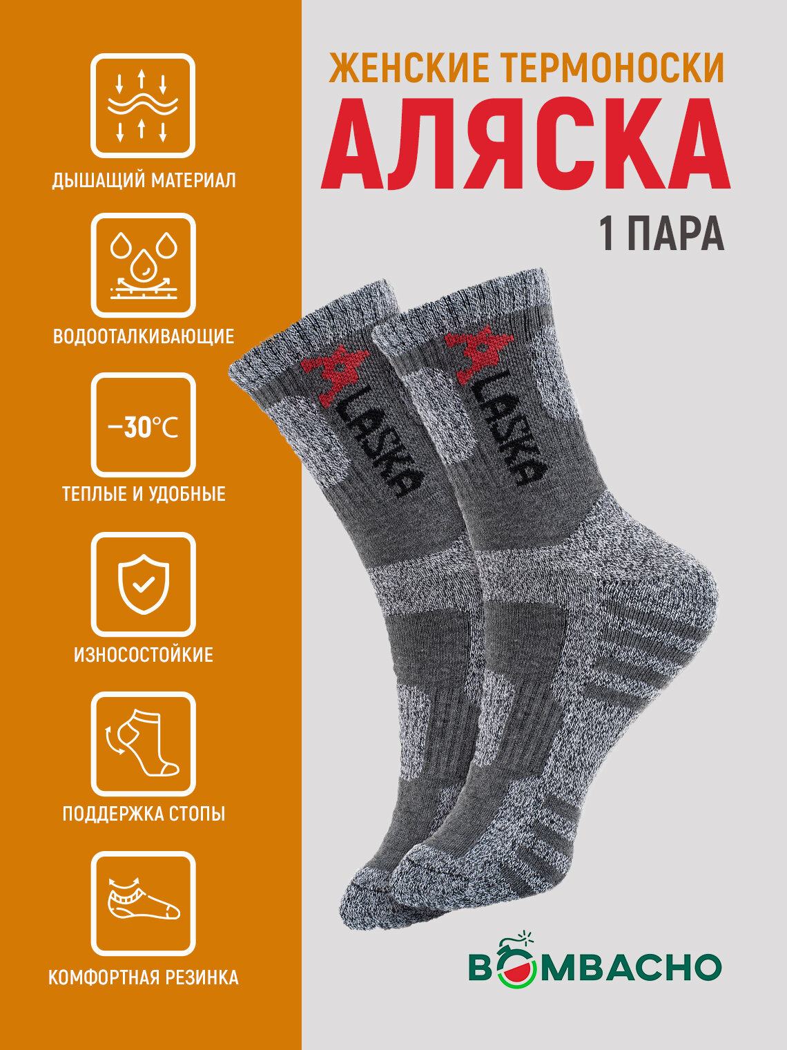 Термоноски BOMBACHO Alaska, светло-серый
