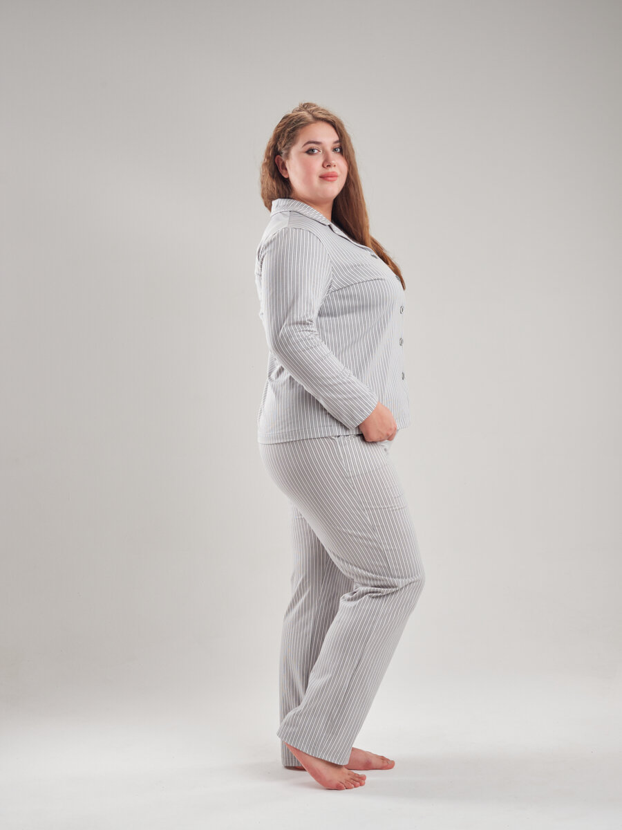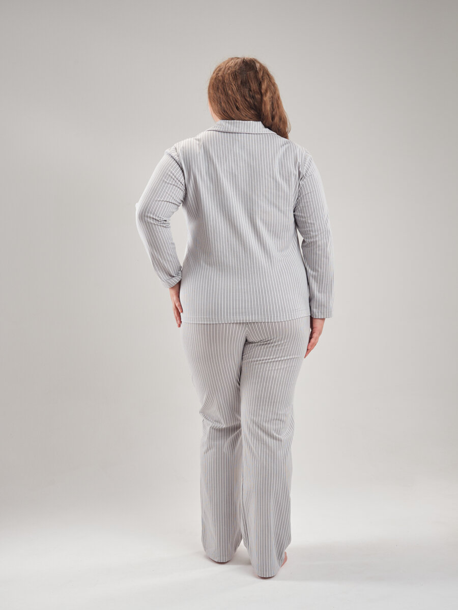 Женская пижама с брюками и рубашкой полосатая , серая полоска ,56 размер, NINEL