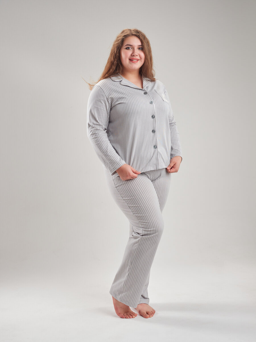 Женская пижама с брюками и рубашкой полосатая , серая полоска ,54 размер, NINEL