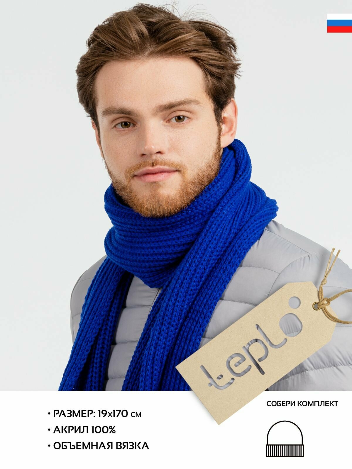 Шарф teplo для мужчин и женщин,170х19 см, универсальный, синий