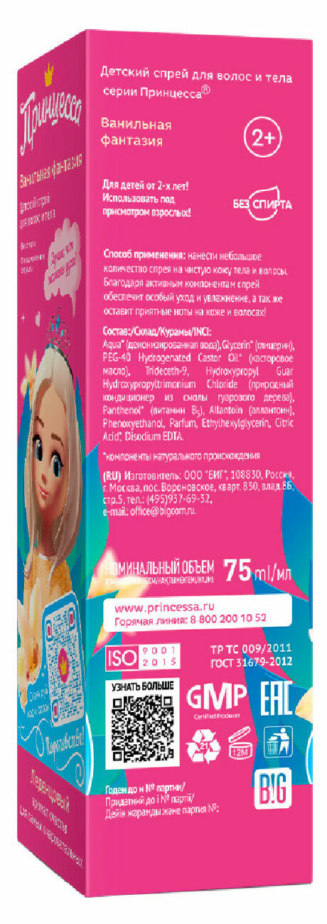 Спрей для тела и волос "Ванильная фантазия Принцесса", 75 мл 9257156 интересное: