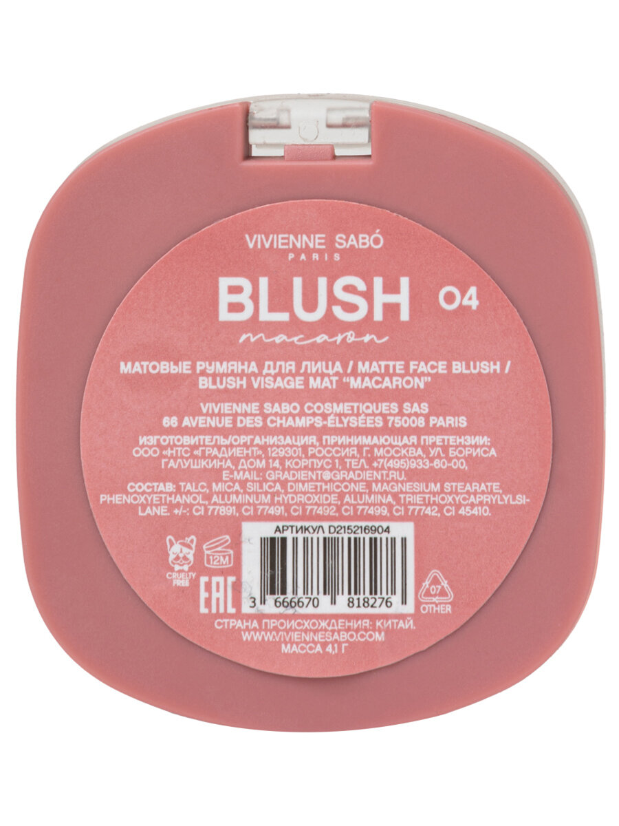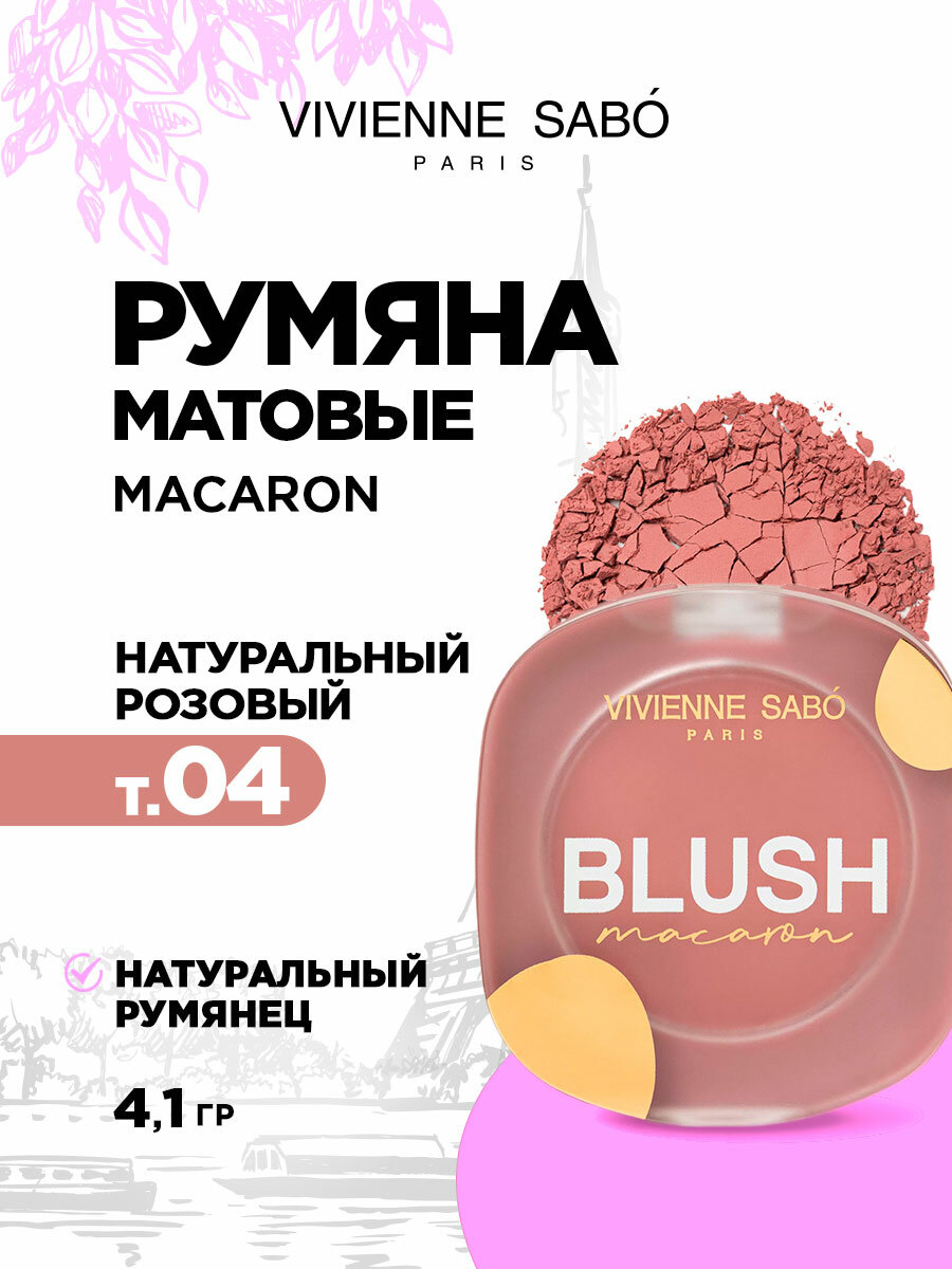 Румяна для лица Vivienne Sabo матовые Macaron, тон 04 натуральный розовый