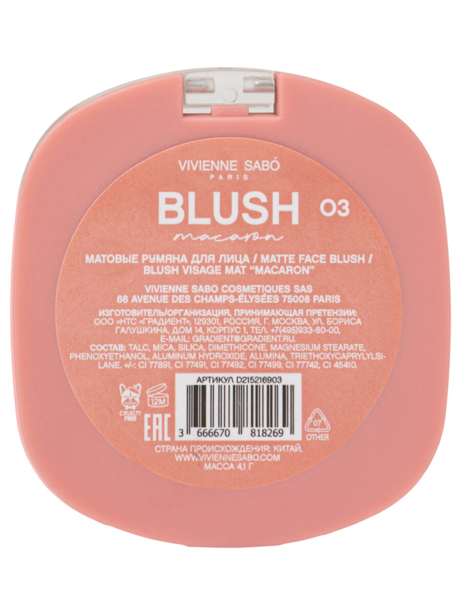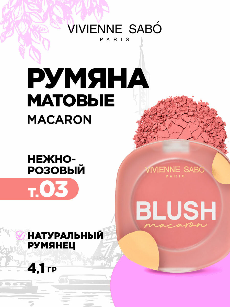 VIVIENNE SABO Матовые румяна для лица Macaron, 4,1 г, 03 Нежно-розовый