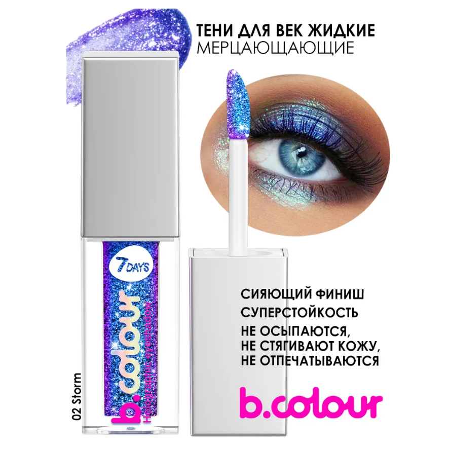 Тени для век мерцающие жидкие 7 DAYS Holographic Eyeshadow т.02 Storm 5,5 мл интересное: