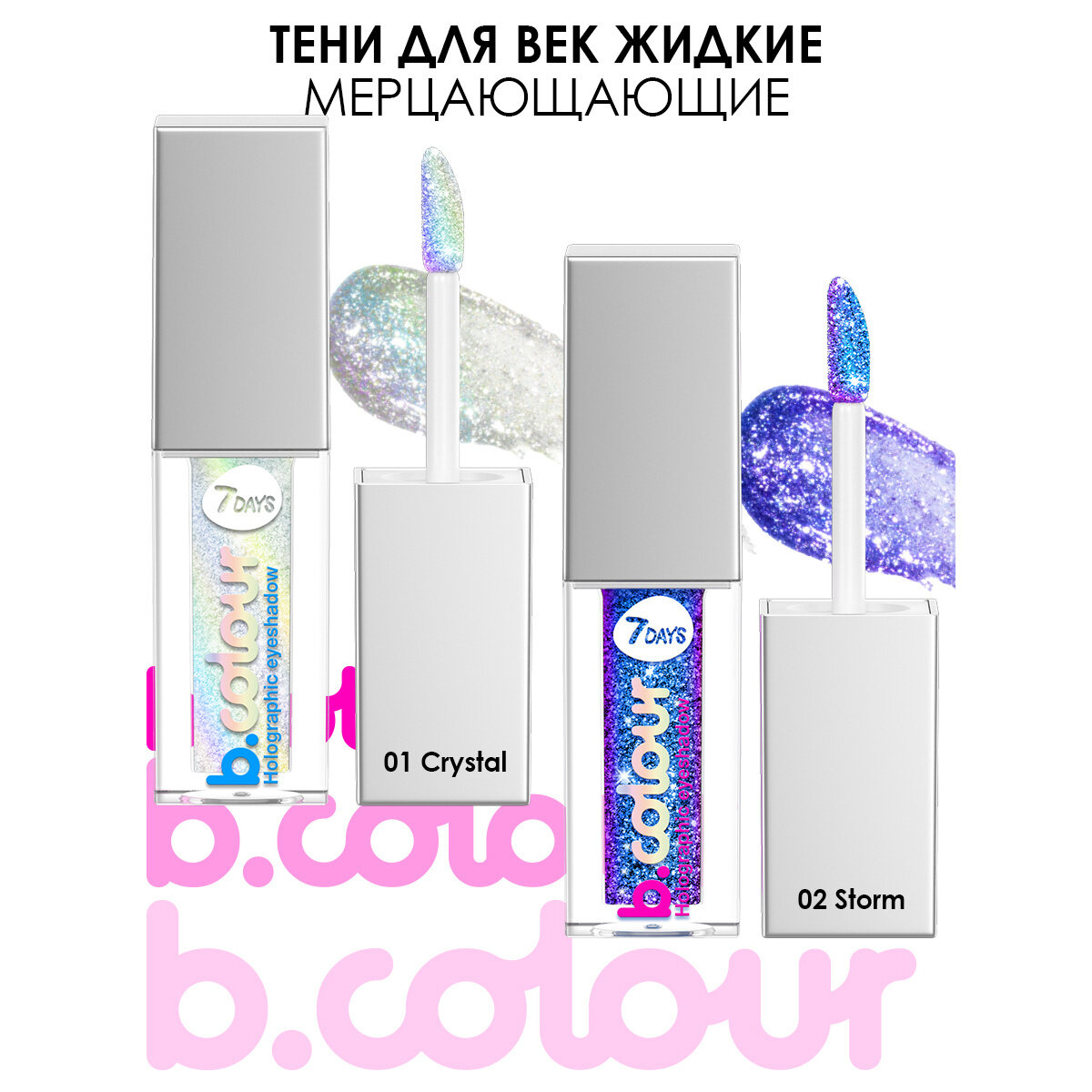 7DAYS Тени для век блестящие жидкие и мерцающие B.COLOUR 01 CRYSTAL