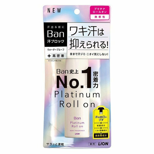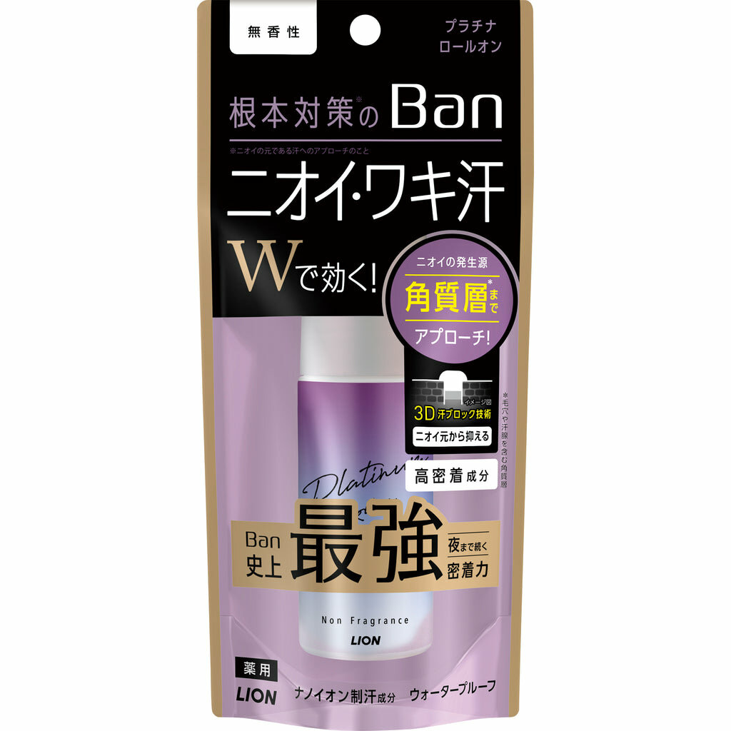 LION Дезодорант-антиперспирант ролик Ban Sweat-Blocking Premium Label for Men Non Fragrance, 40 мл