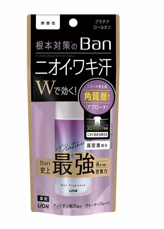 Купить Дезодорант-антиперспирант роликовый ионный блокирующий потоотделение BAN Platinum (устойчивый к трению, без запаха) 40 мл