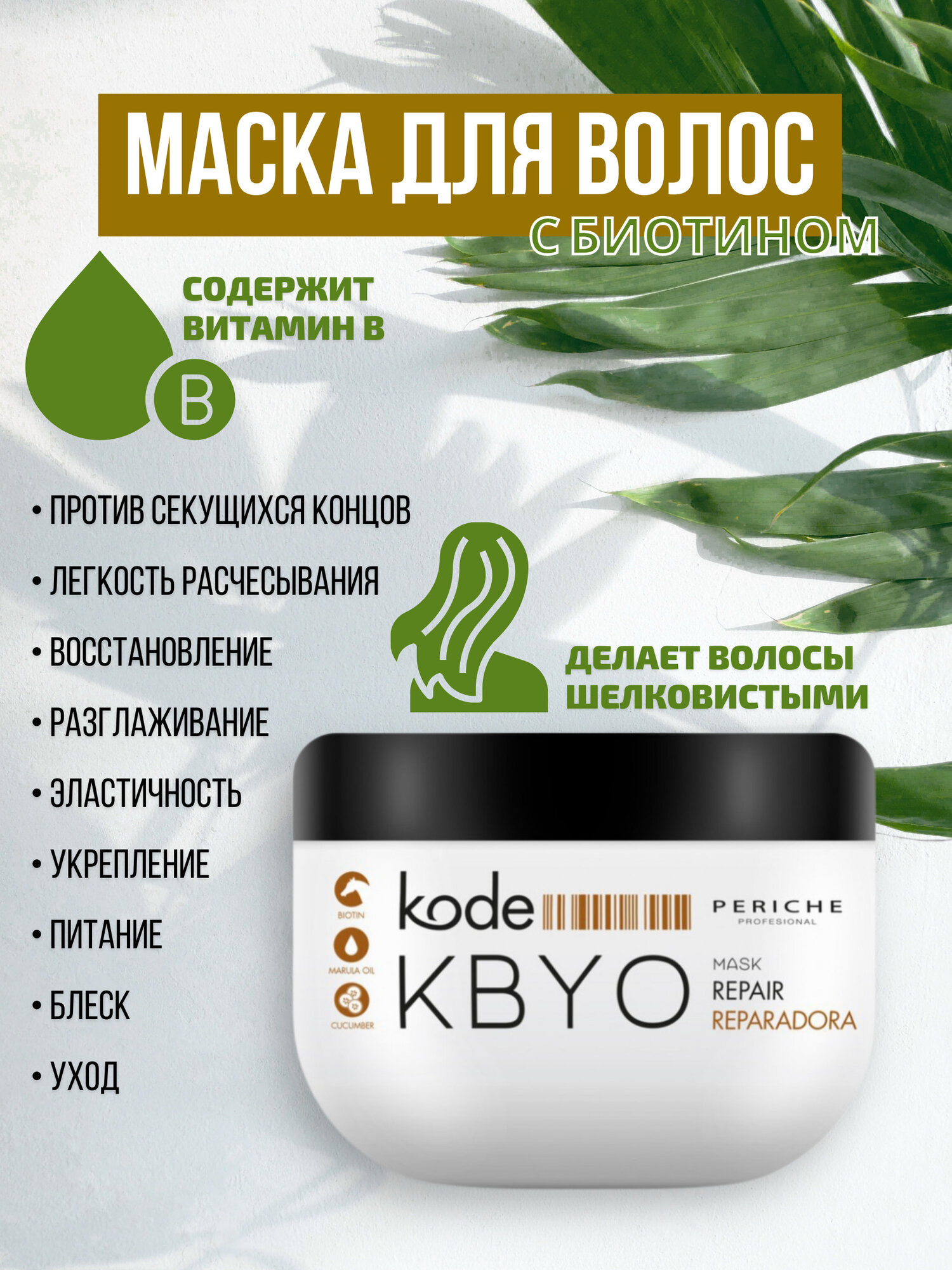 PERICHE PROFESIONAL Восстанавливающая маска для волос с биотином KBYO, 500 мл интересное: