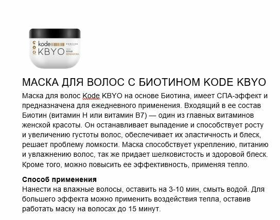 PERICHE PROFESIONAL KODE маска для волос с биотином 500мл /KBYO Mask
