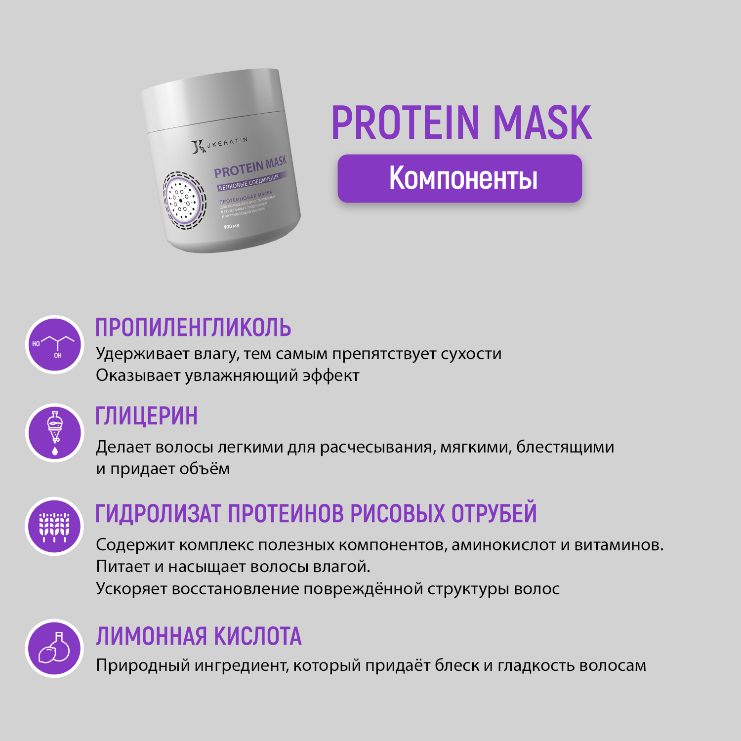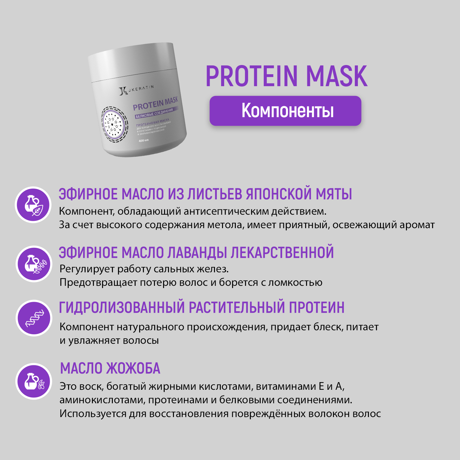 JKeratin Protein Mask профессиональная маска для насыщения волос протеинами, 400 мл