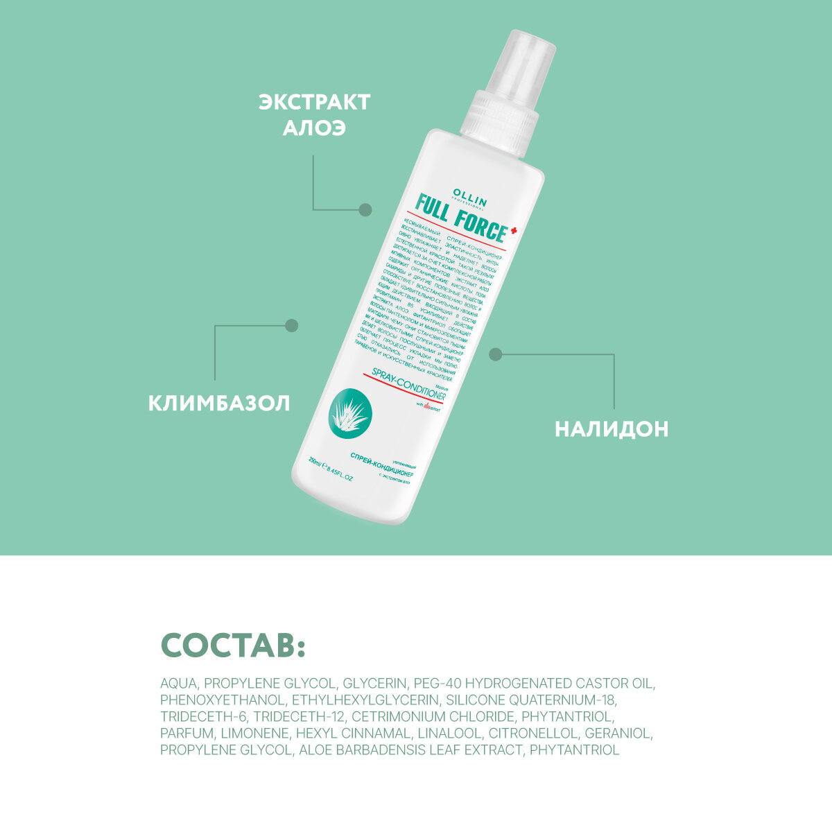 Спрей-кондиционер FULL FORCE для увлажнения волос OLLIN PROFESSIONAL с экстрактом алоэ 250 мл