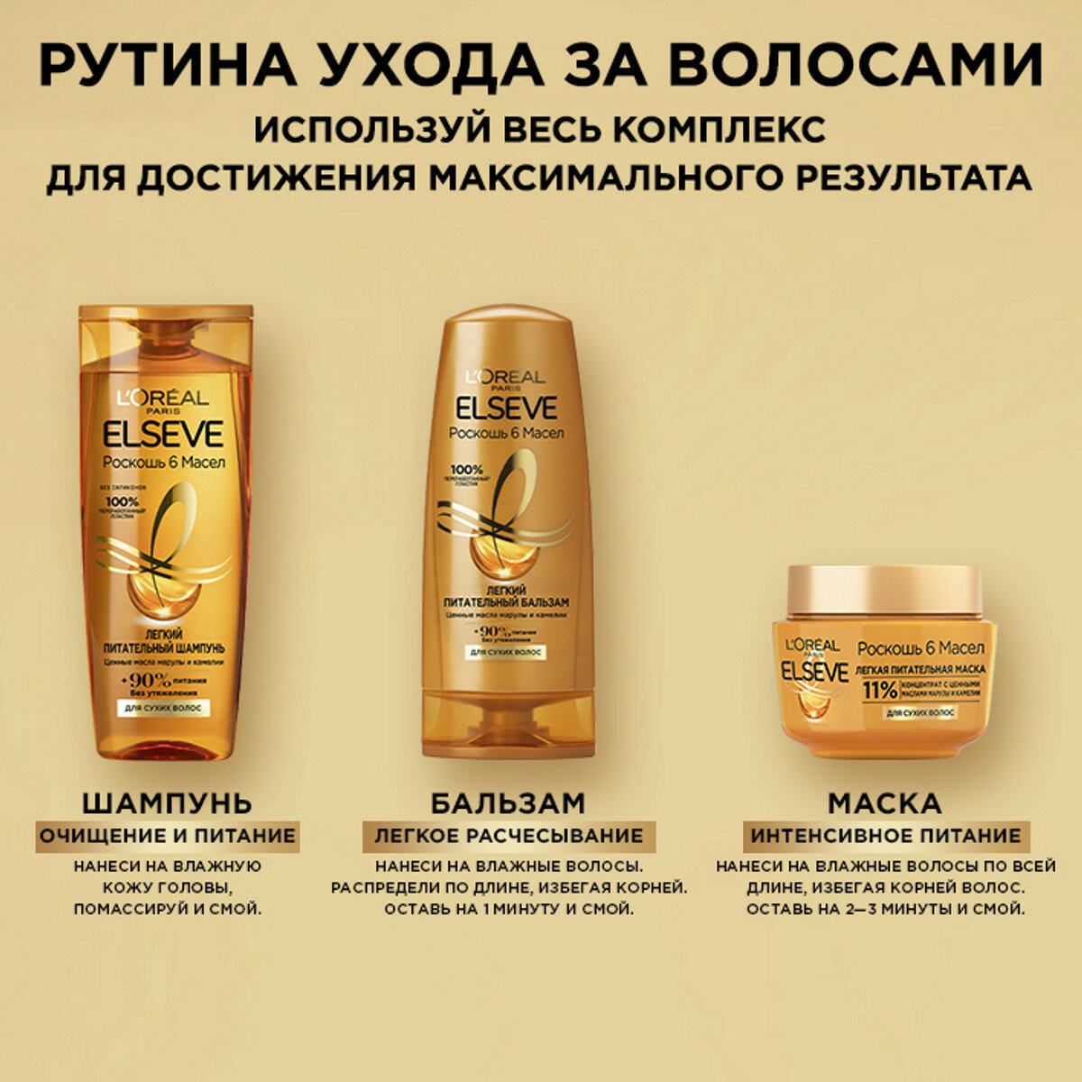 Бальзам для волос L'Oreal Paris Elseve Роскошь 6 Масел легкий питательный бальзам, 400мл