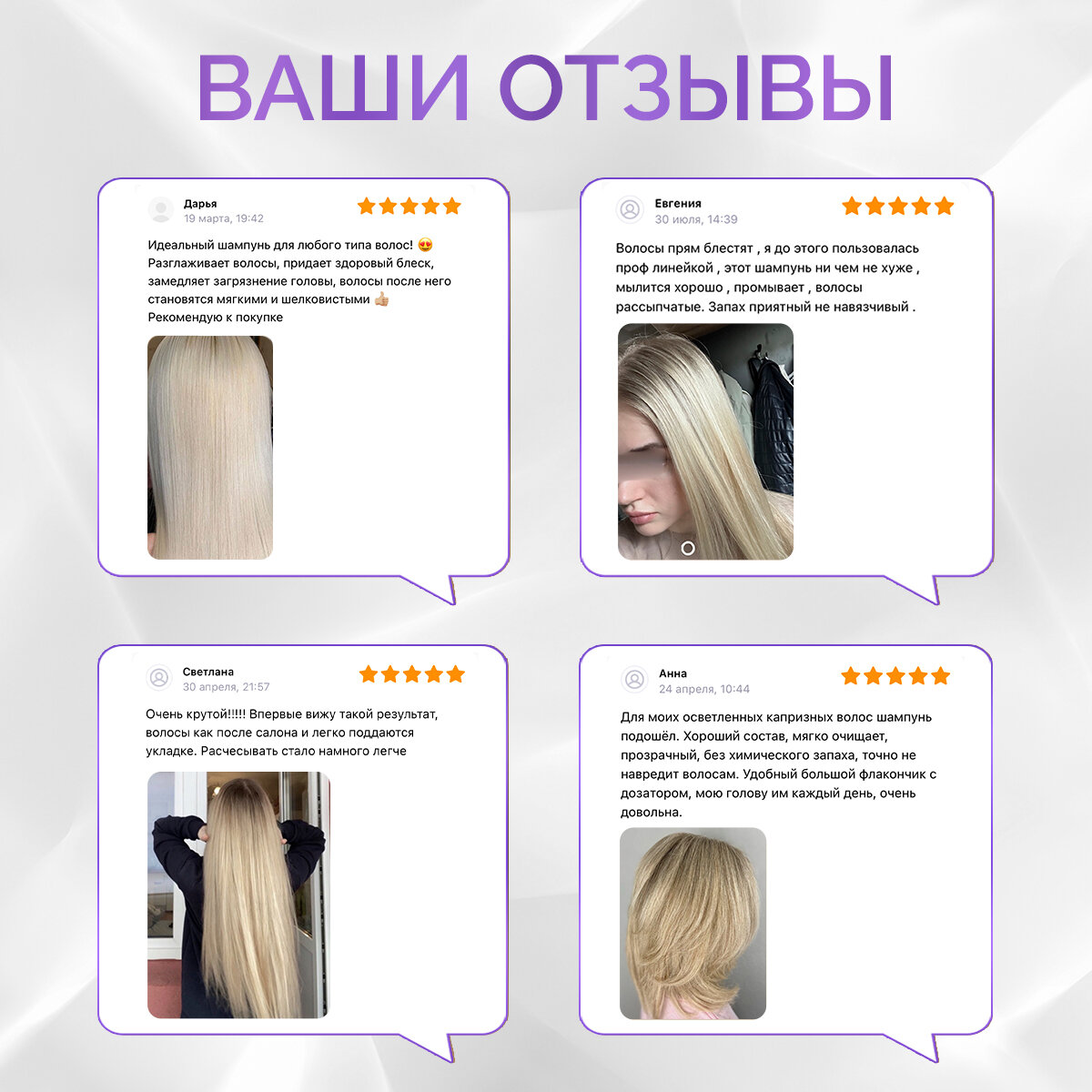 | Эффект | очищение / придание блеска / придание мягкости |