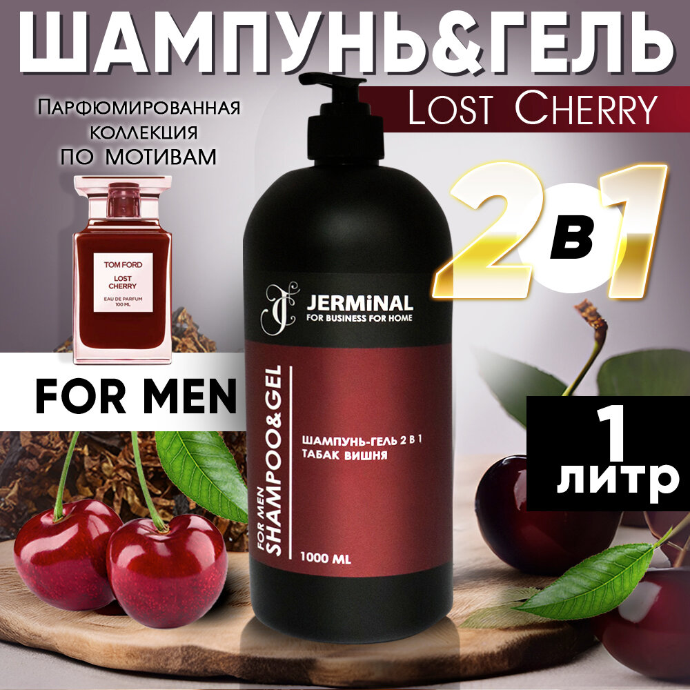 Парфюмированный мужской шампунь 2в1 JERMiNAL-COSMETiCS Вишня табак 2 в 1, 1 литр