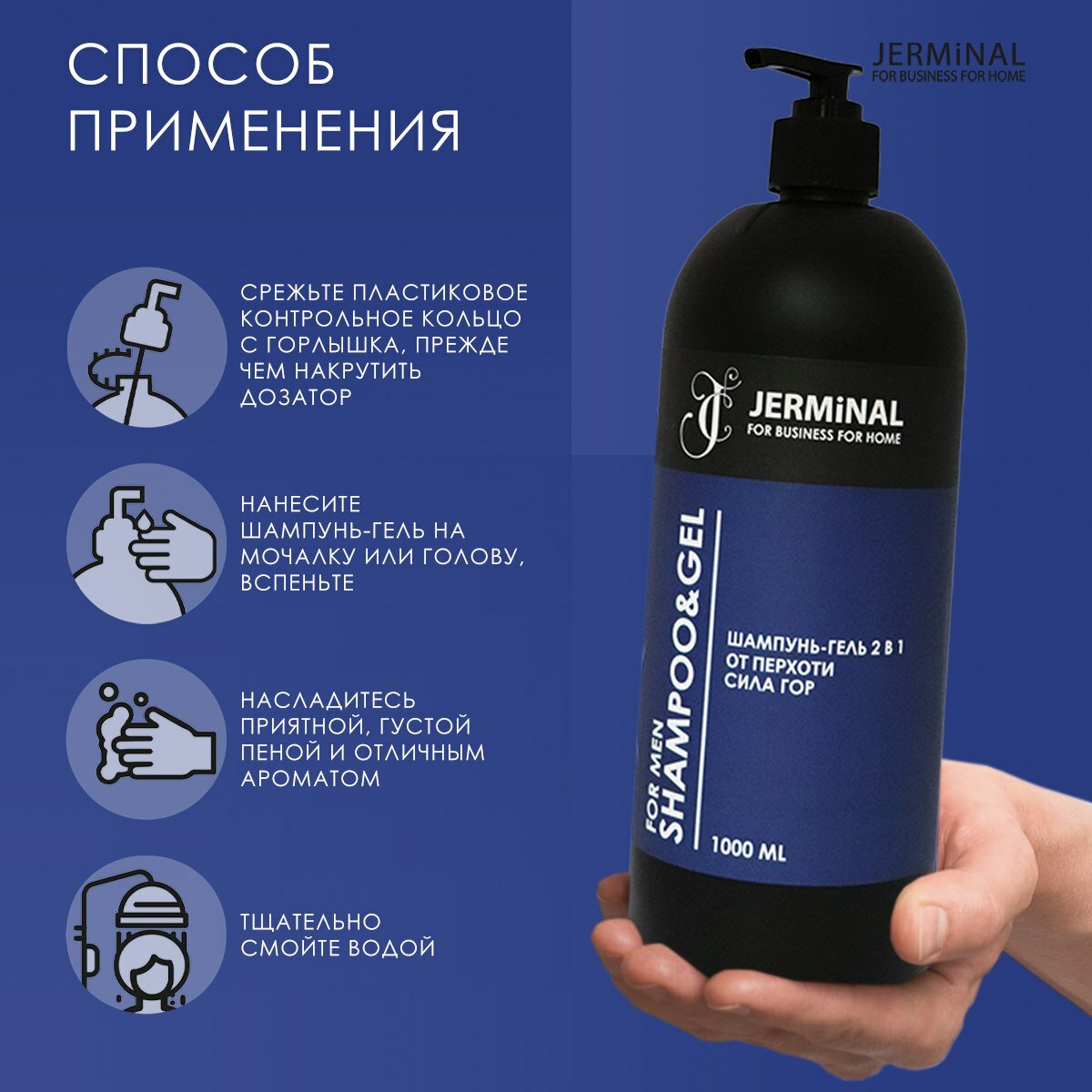 Мужской шампунь-гель JERMiNAL -COSMETICS- Сила древесины 2в1, 1 литр