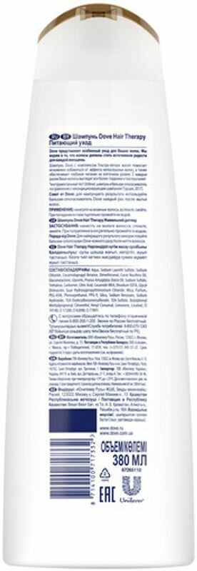 Dove Шампунь Питающий уход для сухих непослушных волос, 380 мл , 2 шт.