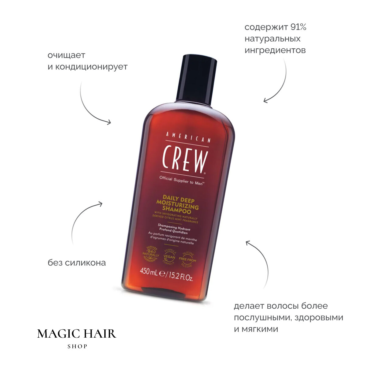 Шампунь ежедневный увлажняющий для волос 450 мл American Crew Daily