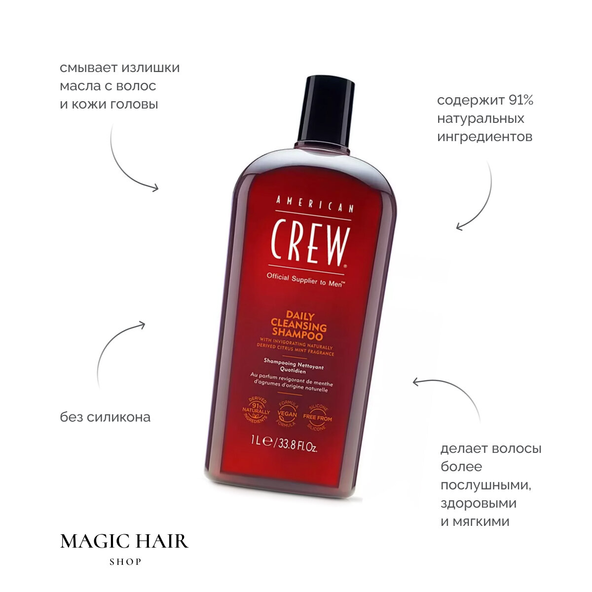 СохранитьAMERICAN CREW DAILY CLEANSING SHAMPOO шампунь очищающий ежедневный для нормальных и склонных к жирности волос и кожи головы, 1000мл интересное: