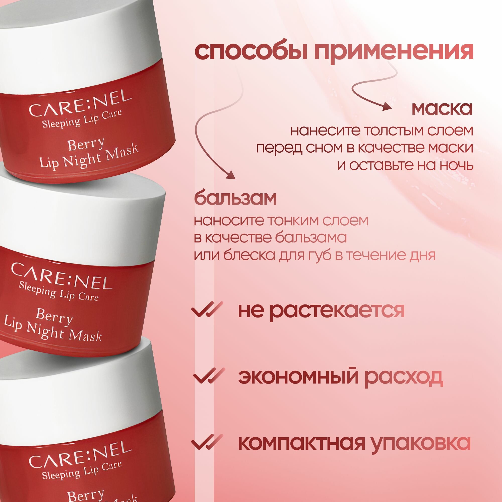 Маска для губ ночная с ароматом ягод CARE:NEL Berry lip night mask, 5г интересное: