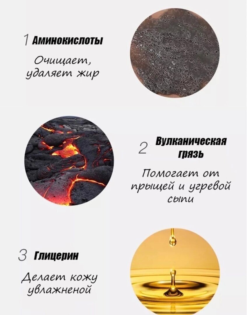 | Активный ингредиент | аминокислоты / гиалуроновая кислота / глина / глицерин / коллаген / морские водоросли |