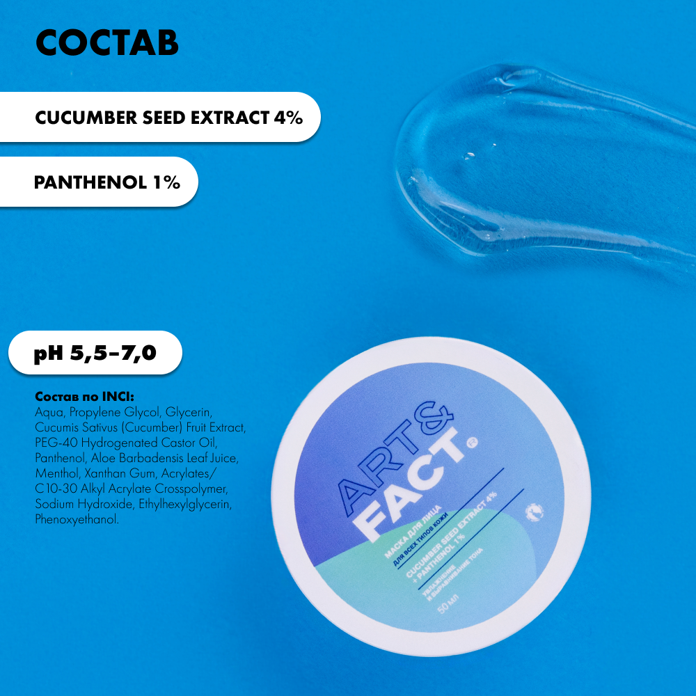 ART&FACT. / Увлажняющая огуречная маска от отеков с охлаждающим эффектом с экстрактом огурца 4% и пантенолом 1%, 50 мл интересное: