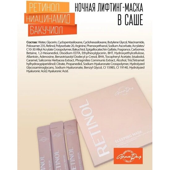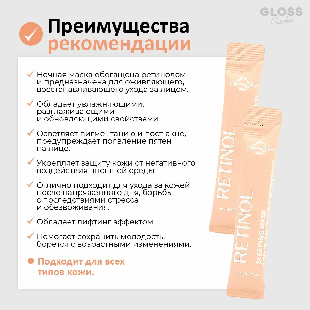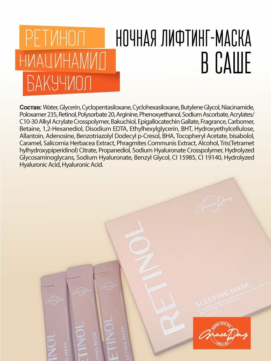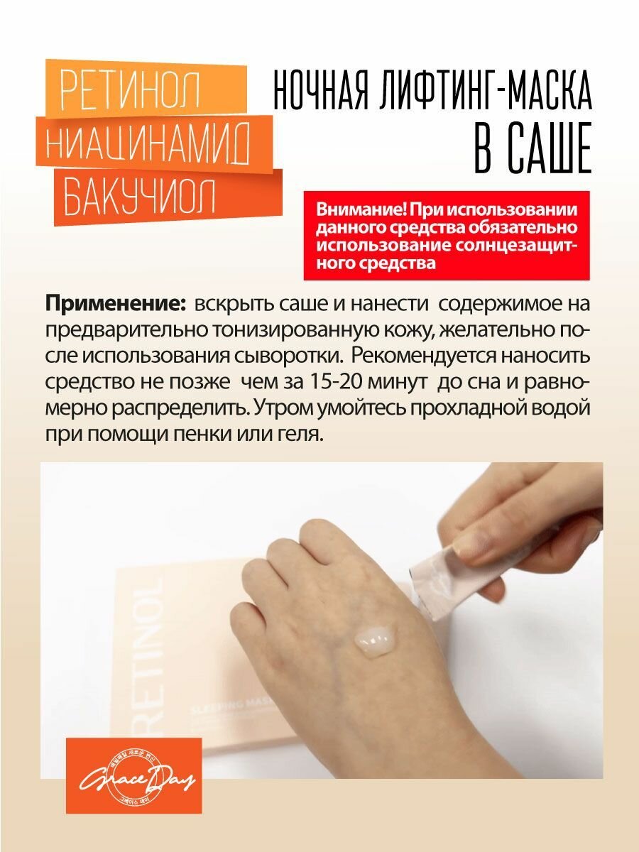 Grace Day Комплект 20шт Ночная маска для лица с ретинолом (20 саше 4мл) Retinol Sleeping Mask интересное: