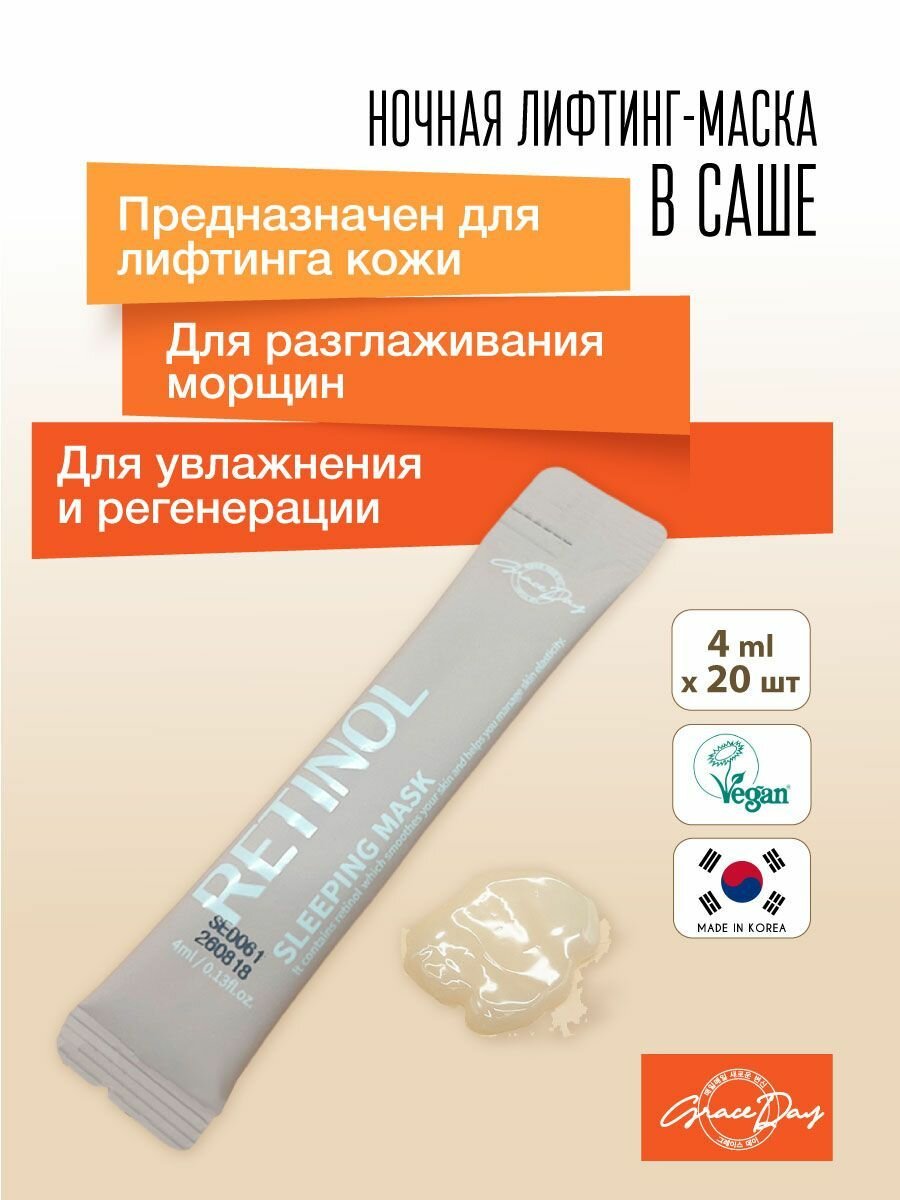 Купить Grace Day Комплект 20шт Ночная маска для лица с ретинолом (20 саше 4мл) Retinol Sleeping Mask