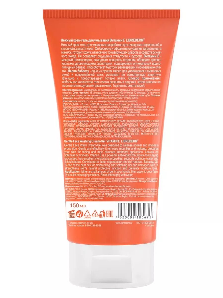 LIBREDERM витамин Е Нежный крем-гель для умывания 150 мл интересное: