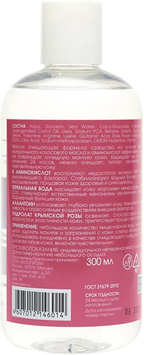 Мицеллярная вода для всех типов кожи, включая чувствительную кожу, 300 мл, Kora интересное: