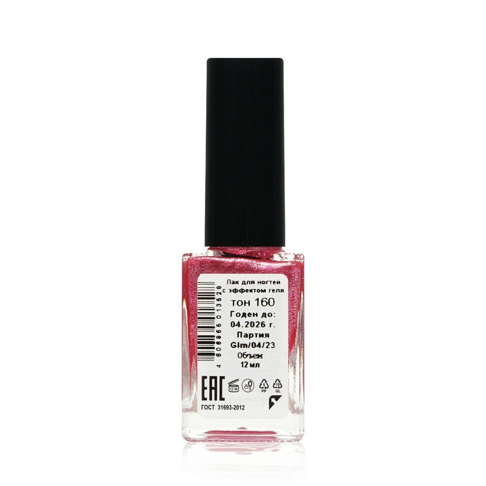 | Состав | этилацетат, бутилацетат, нитроцеллюлозы сополимер, ацетил трибутил цитрат, изопропиловый спирт, акриловый сополимер, ацетат изобутират сахарозы, стеаралкониум гекторит, бензофенон-1, пентаэритритол, тетраизостеарат, косм. пигменты |