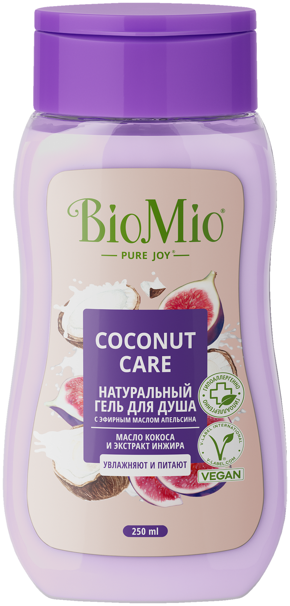 BioMio Натуральный гель для душа с экстрактом инжира и маслом кокоса, двойное увлажнение, 250 мл