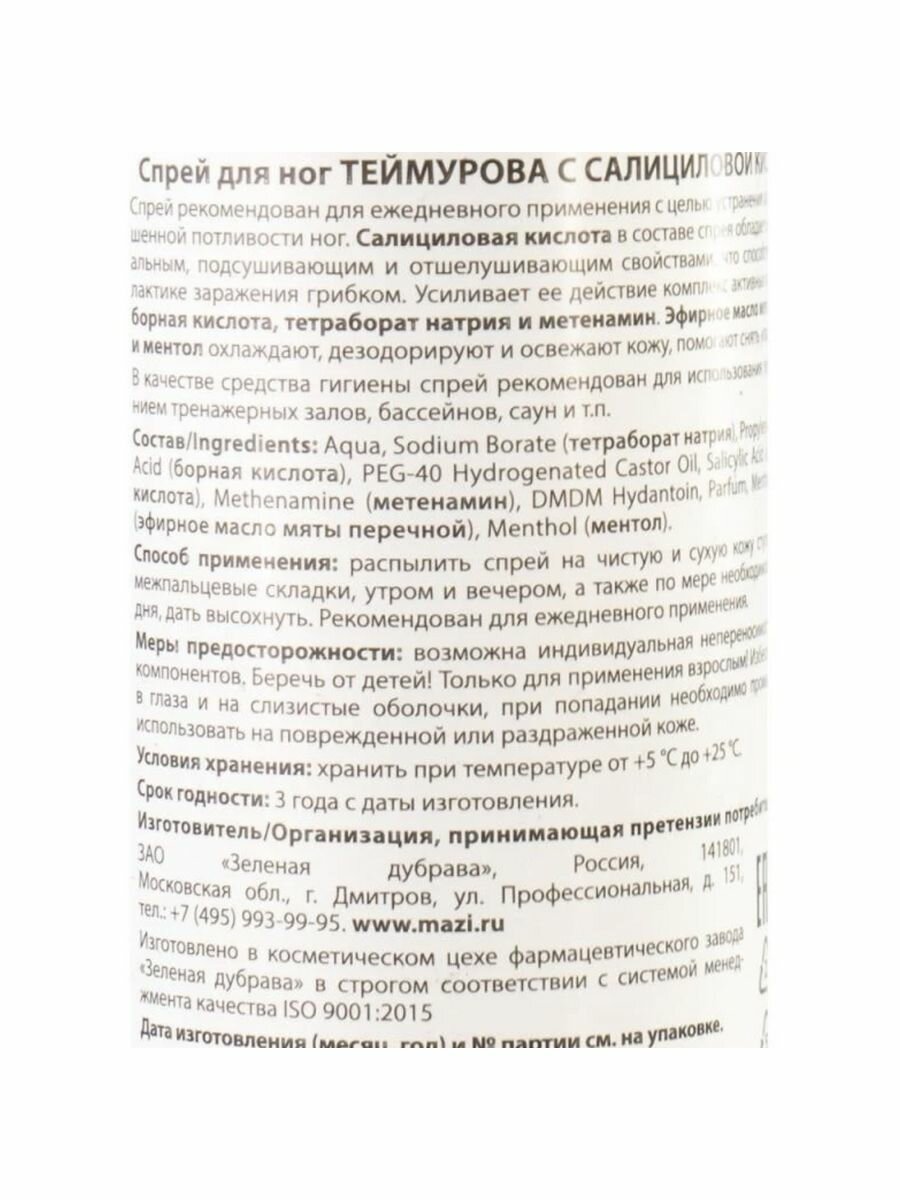 ZD Спрей для ног Теймурова от запаха и пота 150 мл интересное: