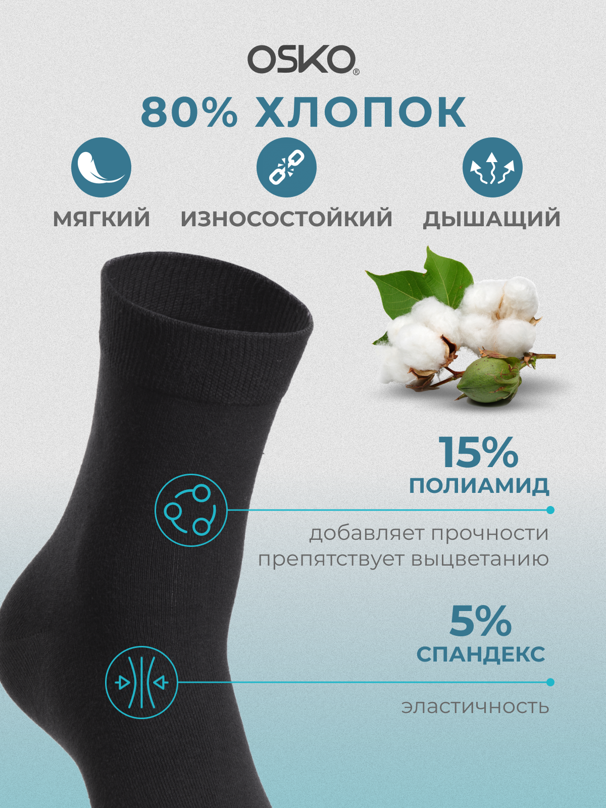 | Состав | модал 60% / полиамид 15% / спандекс 5% / хлопок 20% |