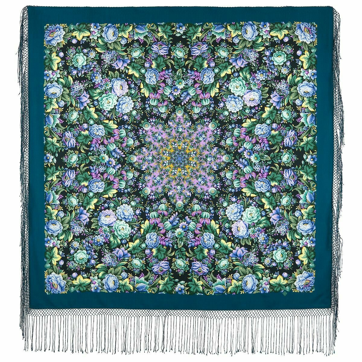 Платок шерстяной Павловопосадские платки 1798 Диво дивное 12, синий, 148 х 148 см