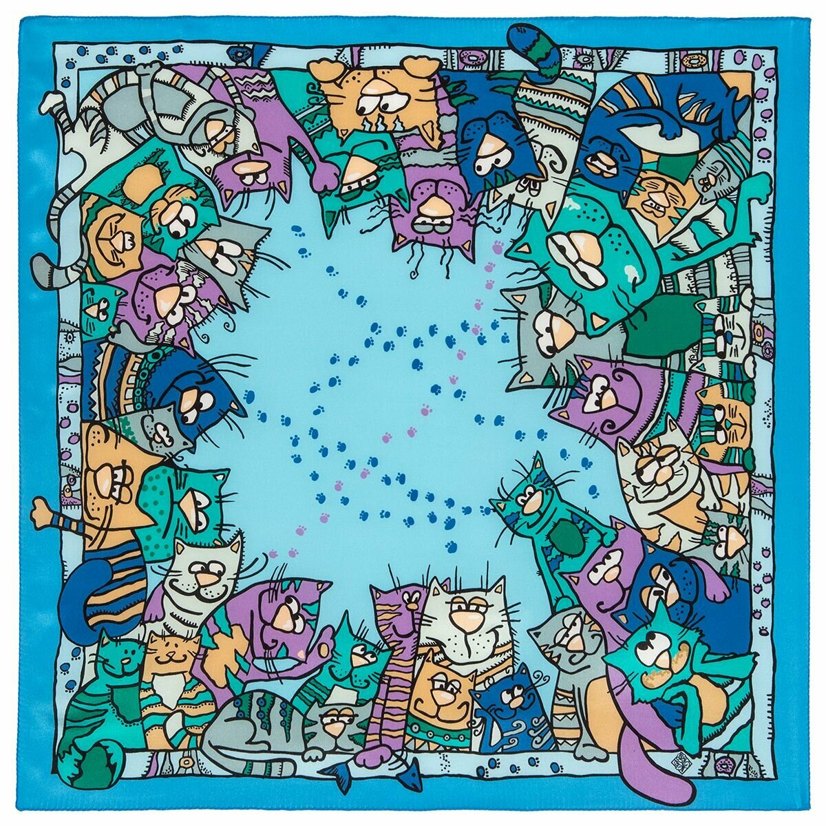 Платок шелковый Павловопосадские платки Мартовский 11, голубой, 65 х 65 см