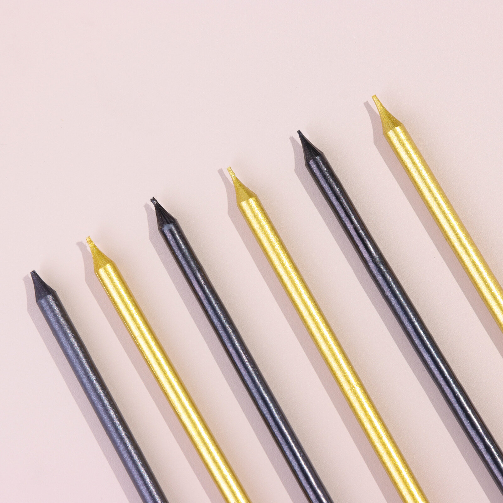 Свечи в торт Ройс, 6 шт, высокие, 13 см, чёрные и золотые