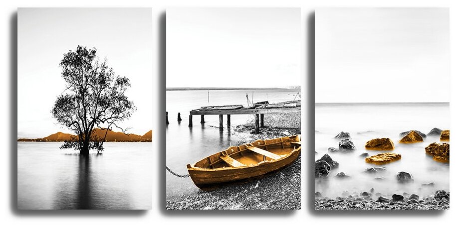 Купить Картины на холсте с подрамником LOFTime 3 шт лодка дерево камни 40Х60 КС-178-4060