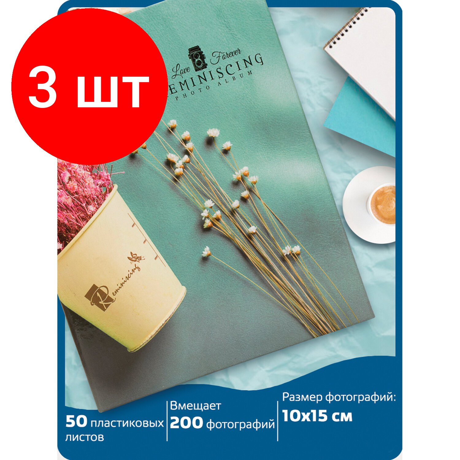 Фотоальбом Brauberg "На бирюзовом фоне", на 200 фото 10х15см, твердая обложка, термосварка, 2шт. (391166)