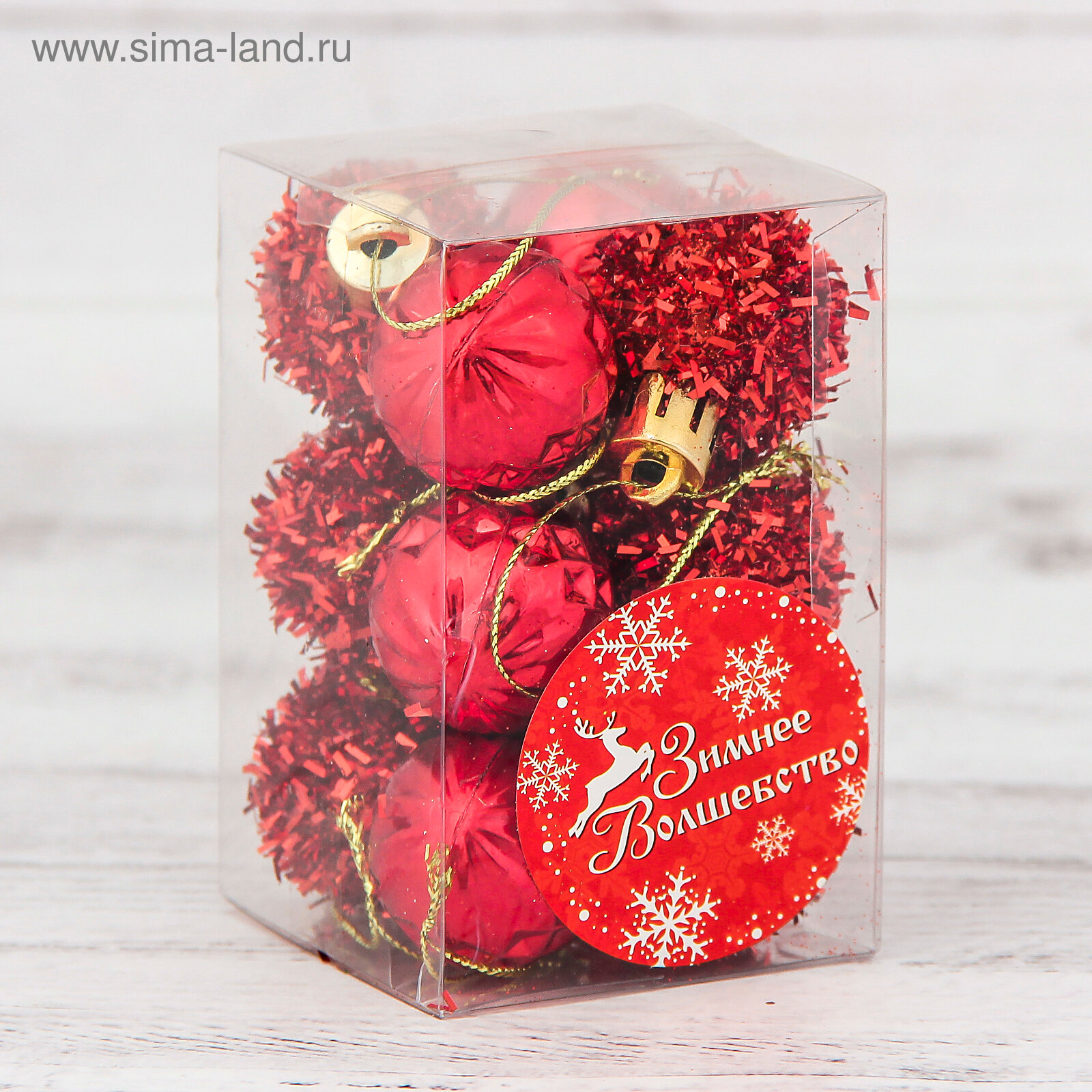 Ёлочные шары Зимнее волшебство - Глянец, красный, пластик, 3 см, 3 набора по 6 шт