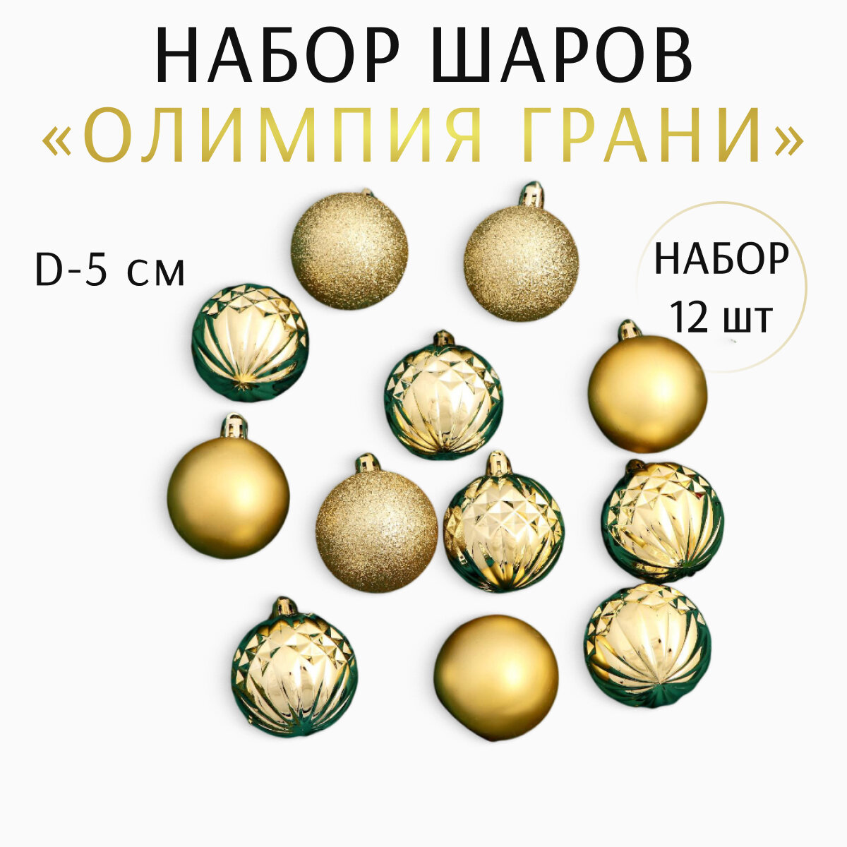 Купить Набор шаров пластик d-5 см, 12 шт "Олимпия грани" золото 6536910