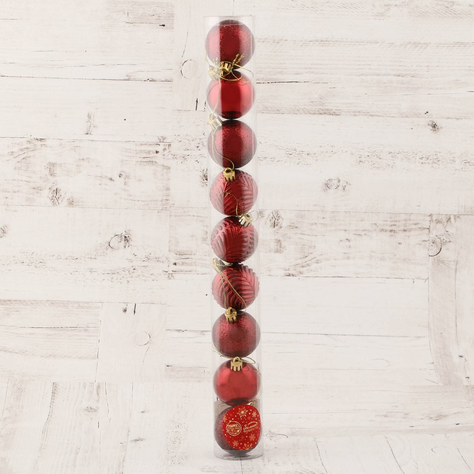 Купить Набор шаров пластик d-5 см, 9 шт "Новогодние ветви" бордовый 4316792