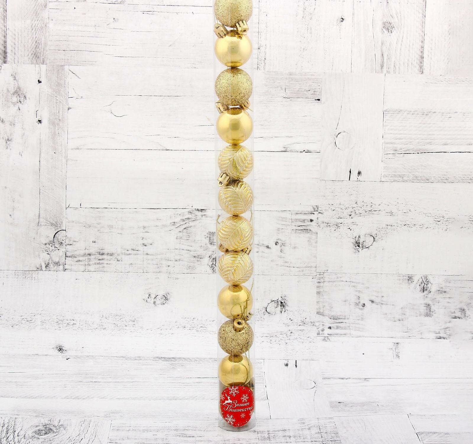 Набор шаров пластик d-5 см, 12 шт "Глянцевый блеск" золото