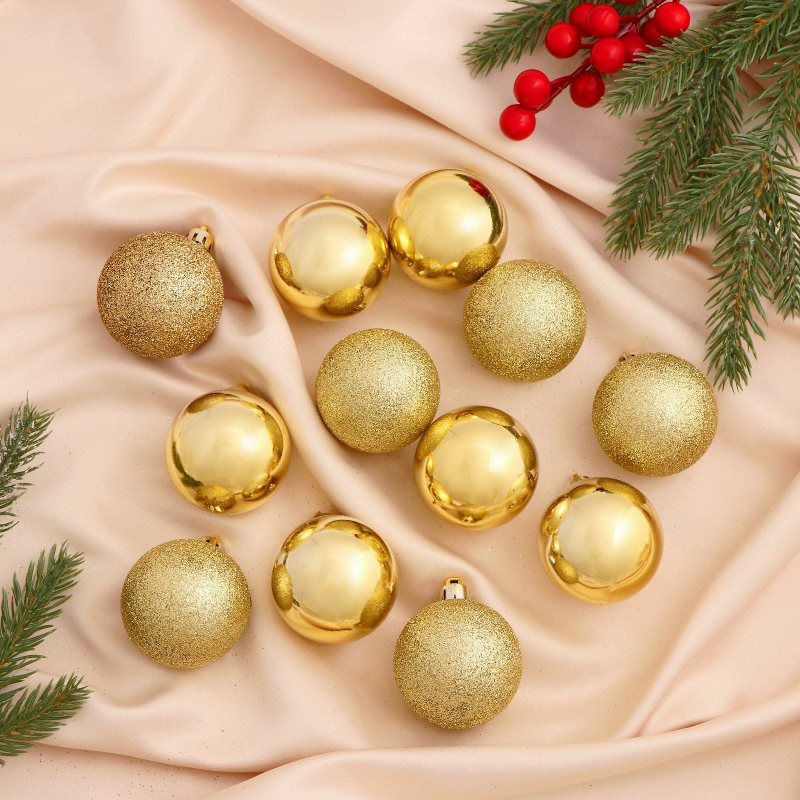 Ёлочные игрушки, шары новогодние , пластик, набор d-5 см, 12 шт "Глянцевый блеск" золото