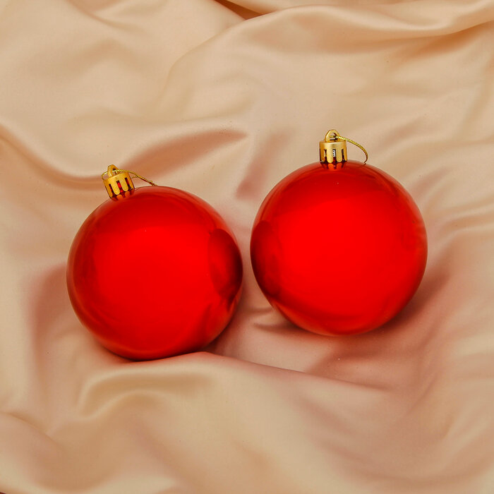 Ёлочные игрушки, шары новогодние, пластик, набор d-3 см, 6 шт "Глянец" красный, 4 шт.