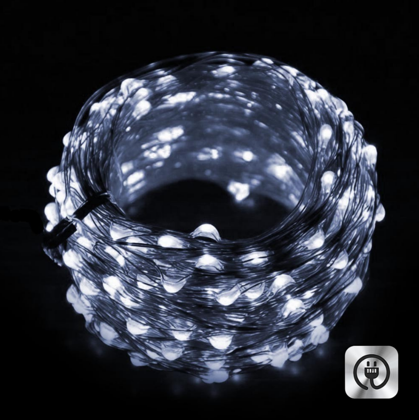 Гирлянда Роса 20 метров, светодиодная, питание от сети, серебристый провод, белый свет интересное: