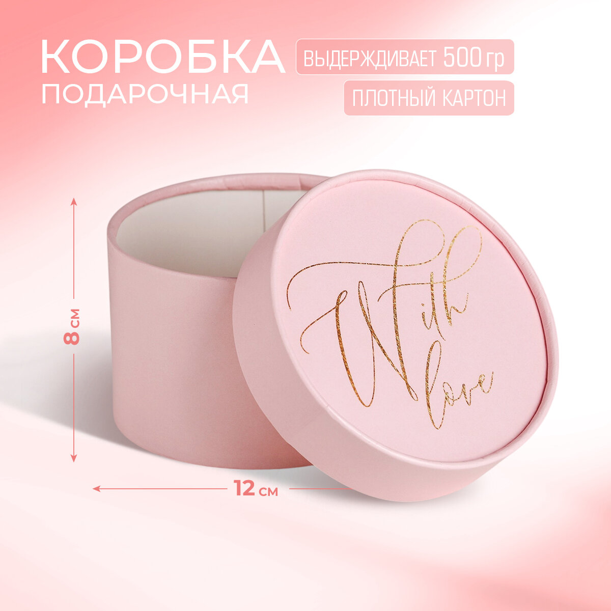 Купить Коробка подарочная розовая, круглая "With love", картон, 12 х 8 см, для упаковки подарка