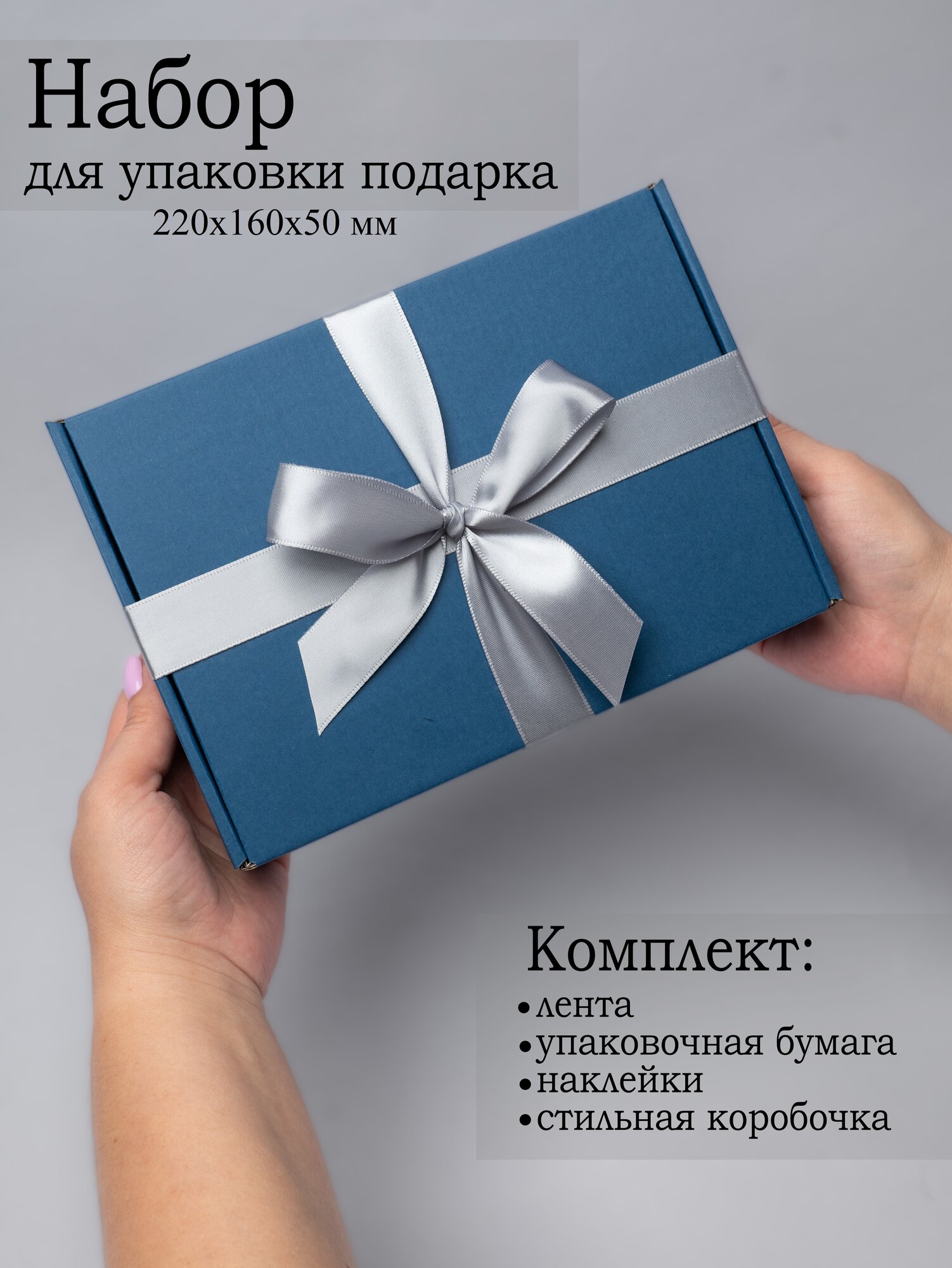 | Комплектация | 1 крафтовая коробка черная, бумага тишью, сатиновая лента 1.5м, набор наклеек для любой категории людей. |