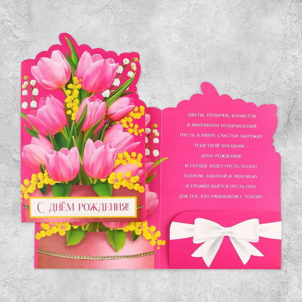 Открытка "С Днём Рождения", цветы, 19 x 29 см, 5 шт. интересное: