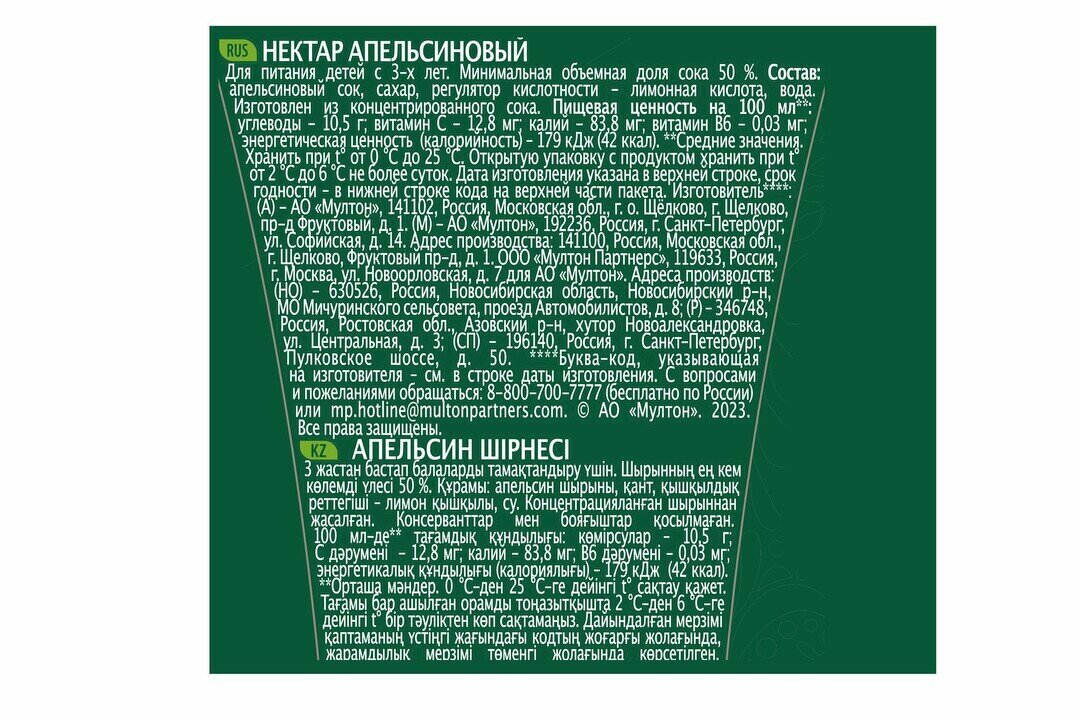 | Дополнительная информация | минимальная объемная доля сока 50%; изготовлен из концентрированного сока; с винтовой крышкой |
